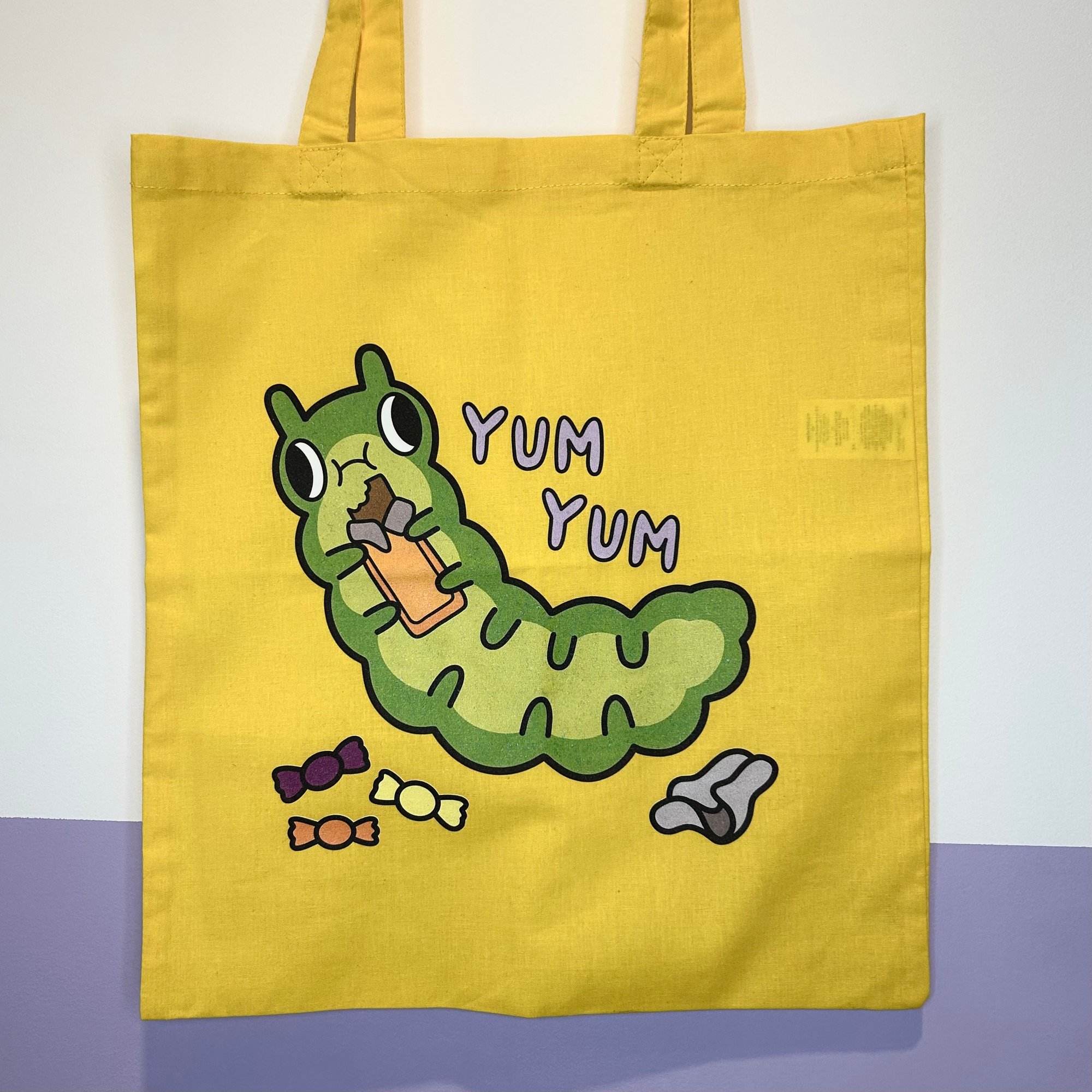 Torba bawełniana z gąsiennicą jedzącą słodycze ( yum, yum )