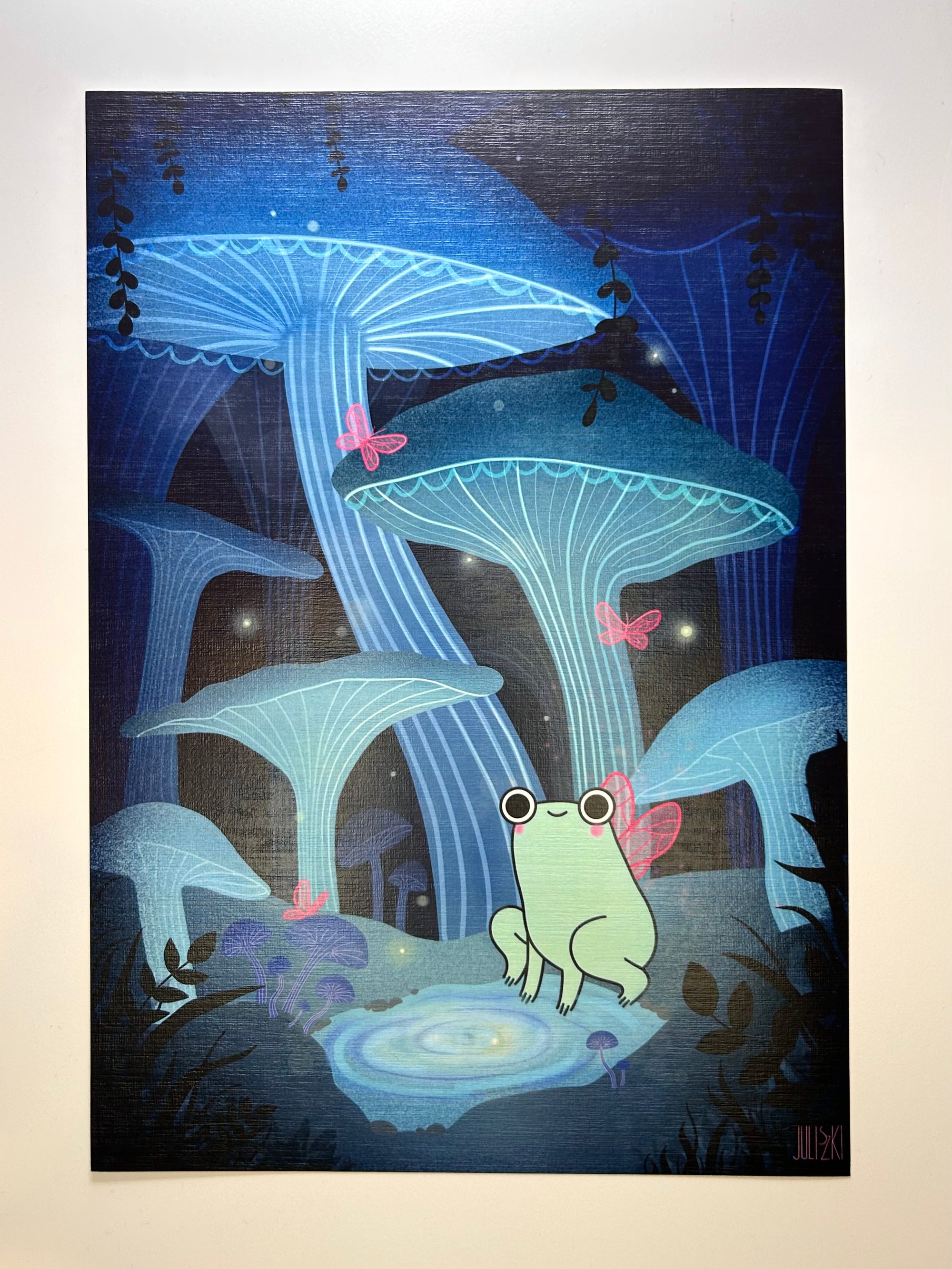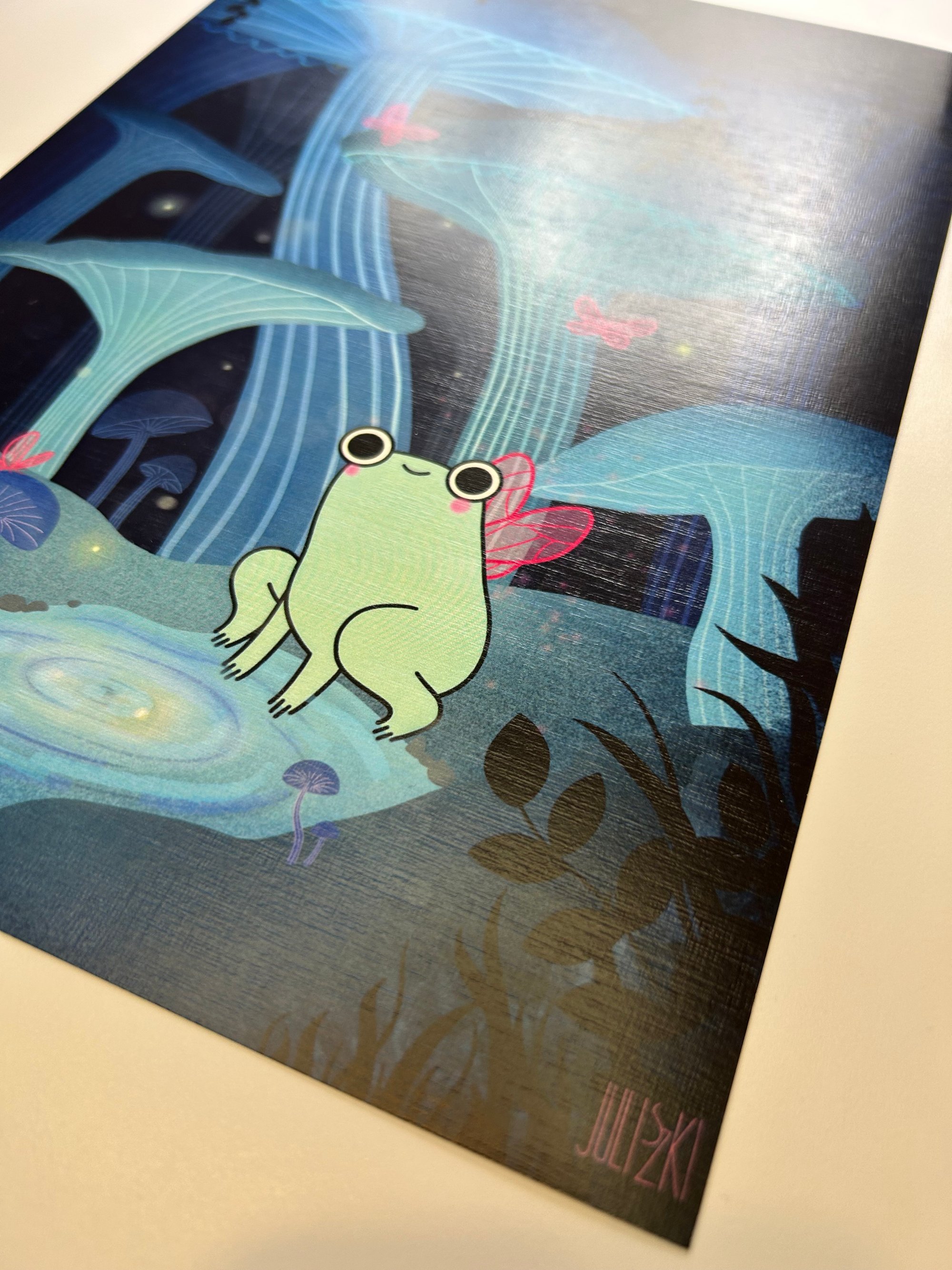 Print z żabką w grzybach, dostępny w rozmiarze A4 i A5